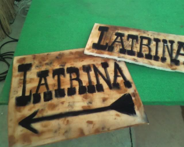 ![]() | Haha! I did those just that afternoon, once we were told that we also had to hang "bathroom this way" kind of signs. Oh, yeah. That means "latrine". :D :D :D (The one with the arrow was hung in the room, while the smaller one went over the bathroom itself.) |