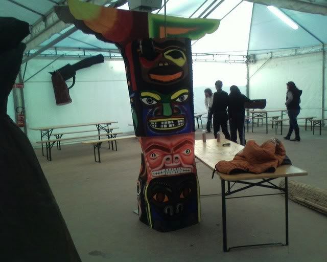 ![]() | Close up on the totem. Cor, did those wings come out bad. ...not to talk about the panels themselves. (Notice the cowboy hat still lying on the table.) |